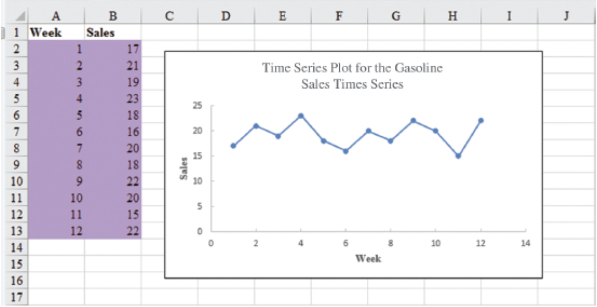 The number of gallons of gasoline sold by a gasoline distributor over a period of 12 weeks is given in the table below. The distributor would like to identify the underlying pattern in the data to guide it in selecting an appropriate forecasting method.