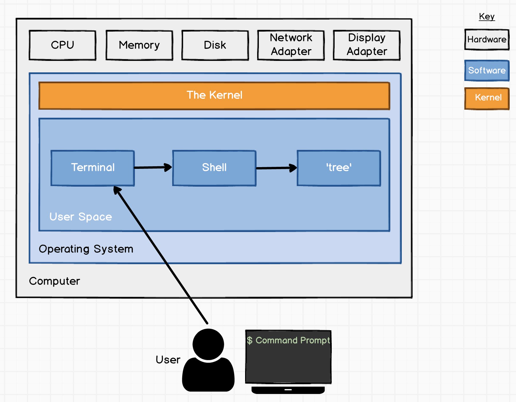 The first thing that a terminal program will do is run a shell program - a program that we can use to operate the computer.