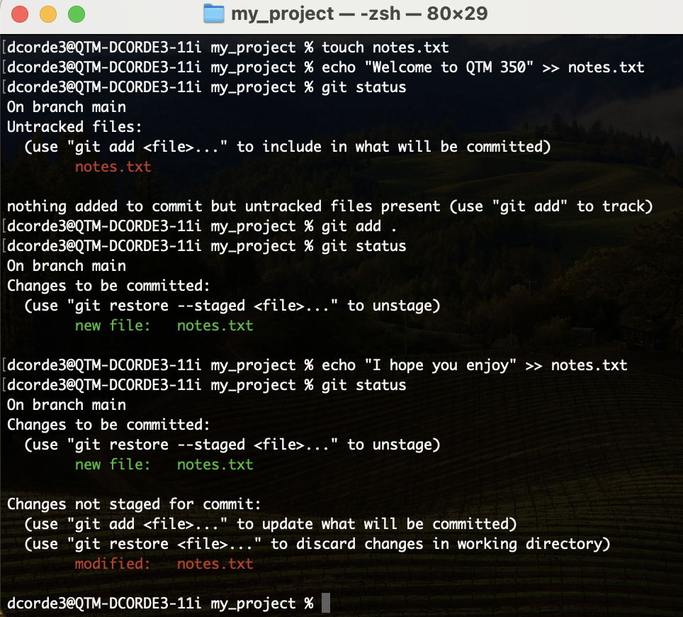 git log # lets check.gitignore.gitignore.gitignore.gitignorenotes.txt file.git statusnotes.txt file one more time.notes.txt file is being tracked.Git branches are a way to create separate development paths without overriding or creating copies of your project.