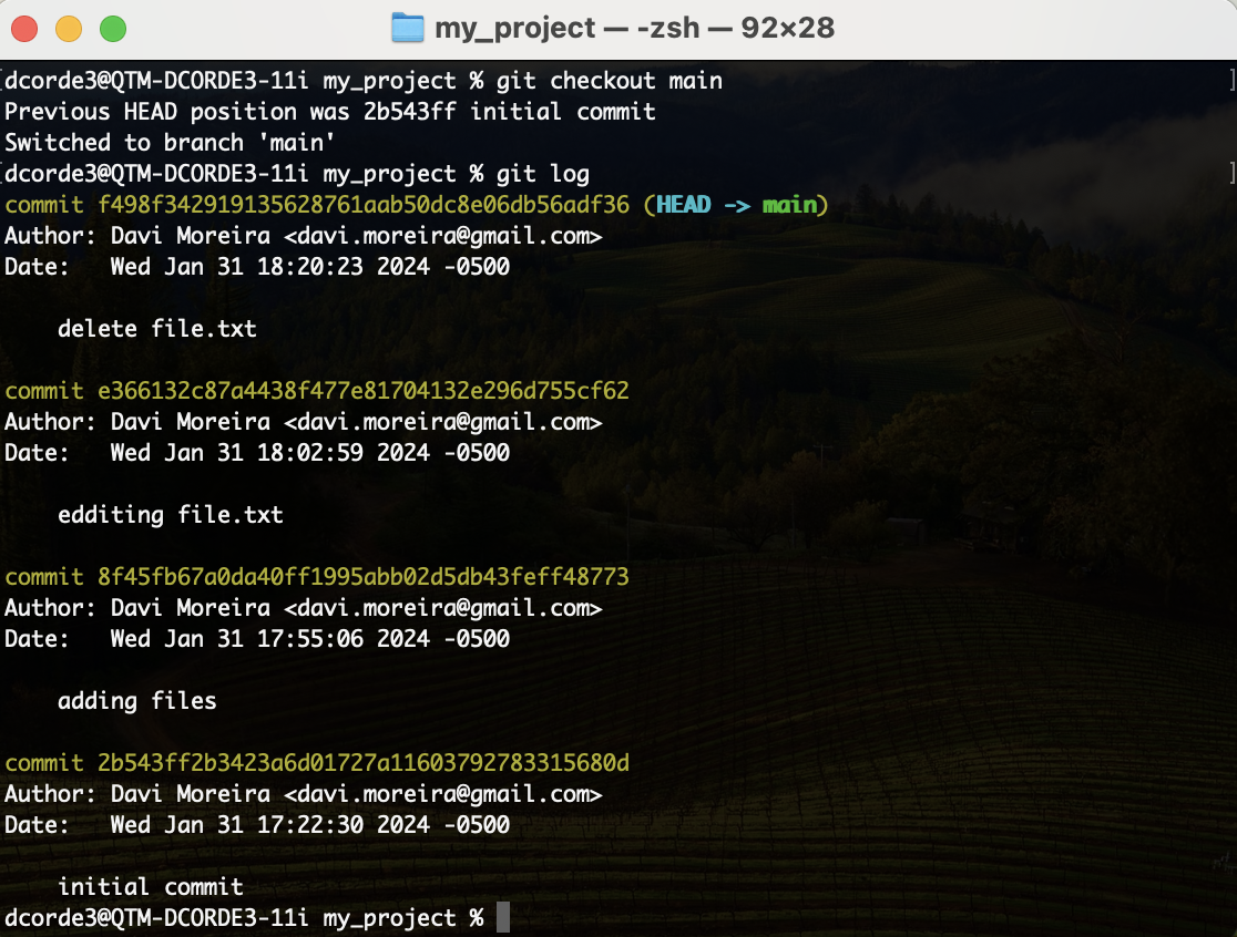 dev, and switch to the new branch.main branch, create a new one bugs, and list themdev branch.version.txt filedev branch and do a new commit and keep working in the dev branch.git checkout dev