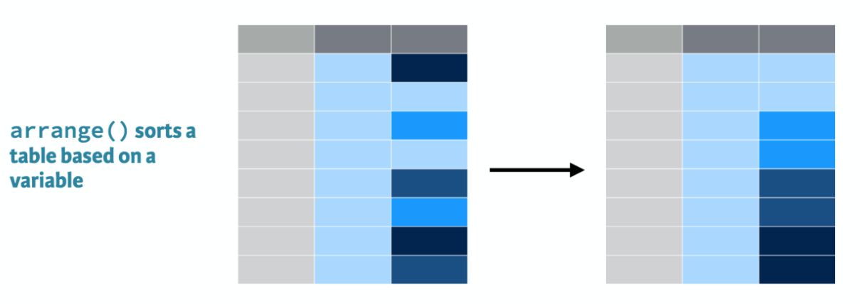 arrange()We can sort rows. For example, sort by departure delay ascending: