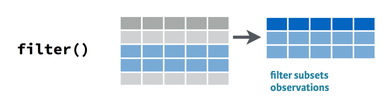 & means AND| means OR! means NOTfilter()We can store results in a new object using logical operators: