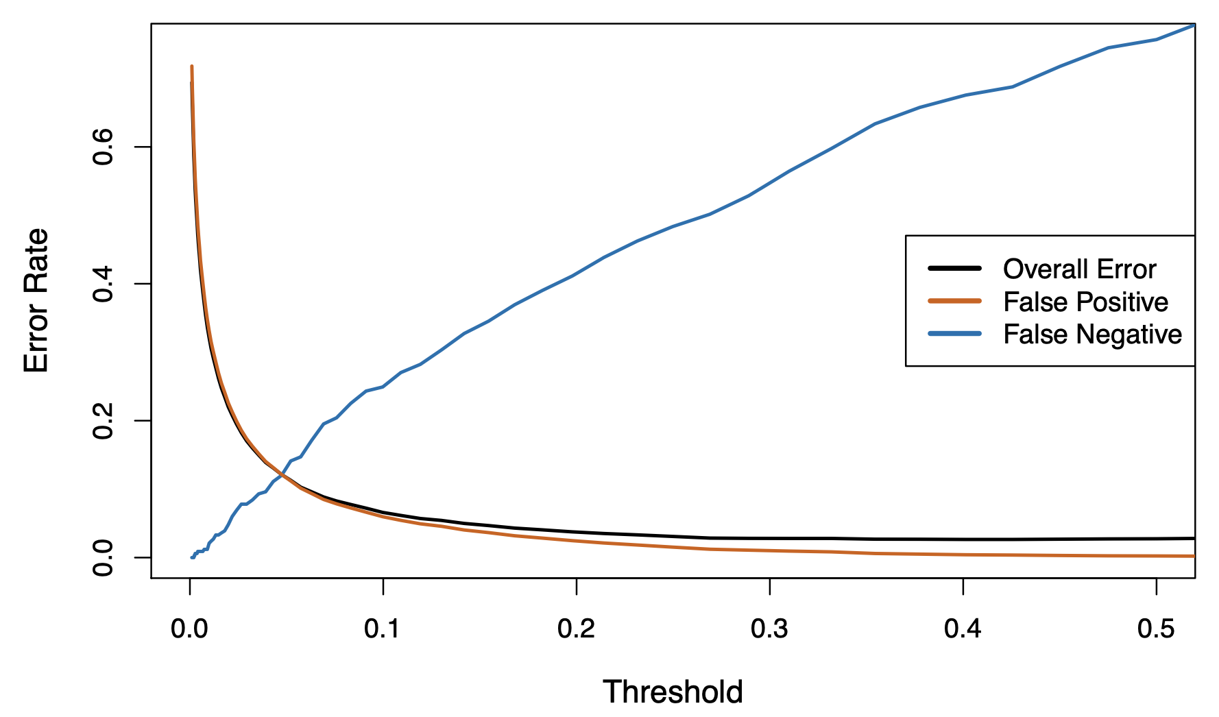 Sometimes we use the AUC or area under the curve to summarize the overall performance. Higher AUC is good.