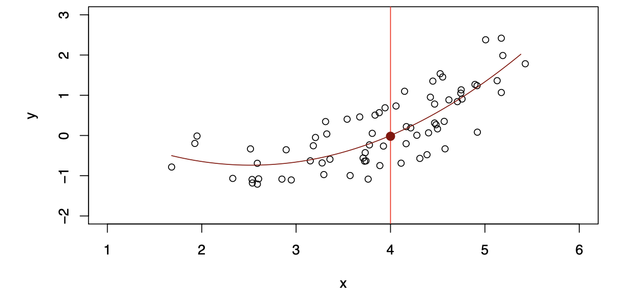 where \(E(Y|X=4)\) means the expected value (average) of \(Y\) given \(X=4\).