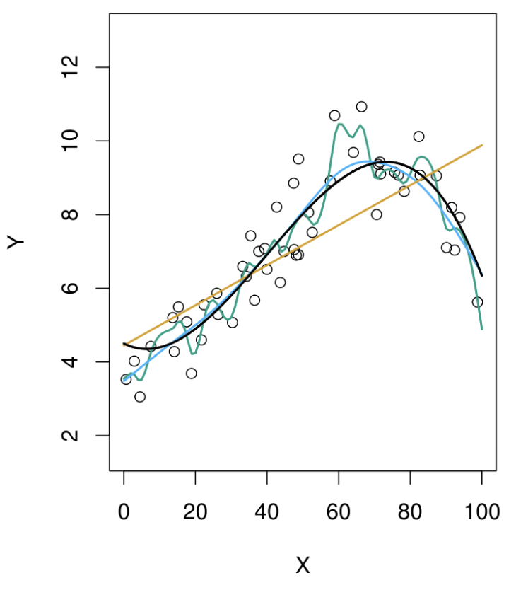 Black Curve: The true generating function, representing the underlying relationship we want to estimate.