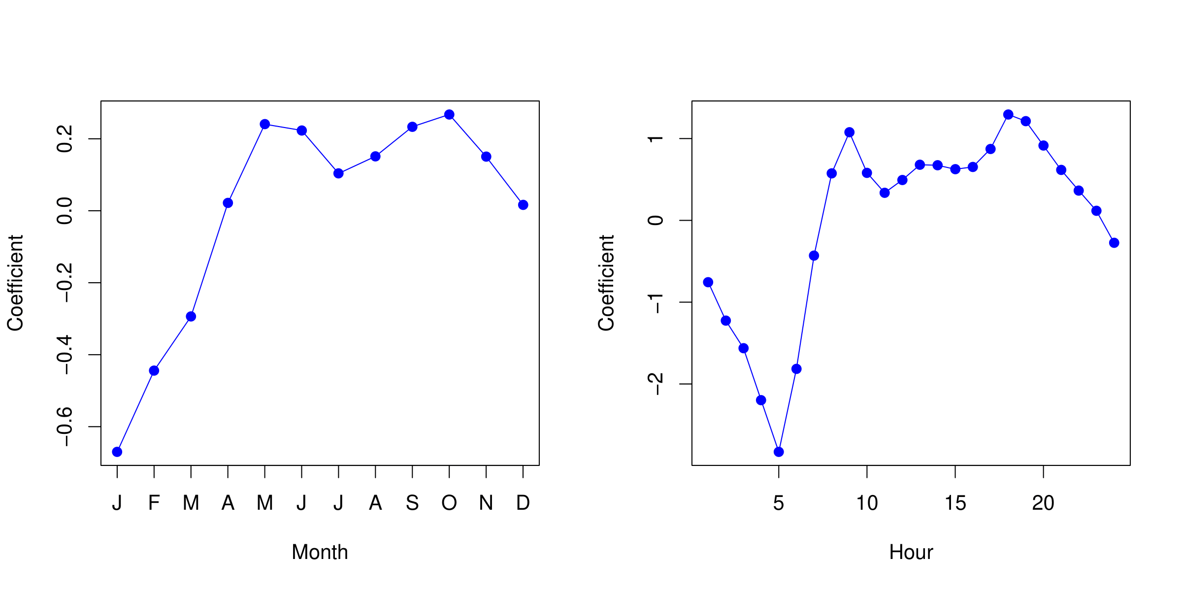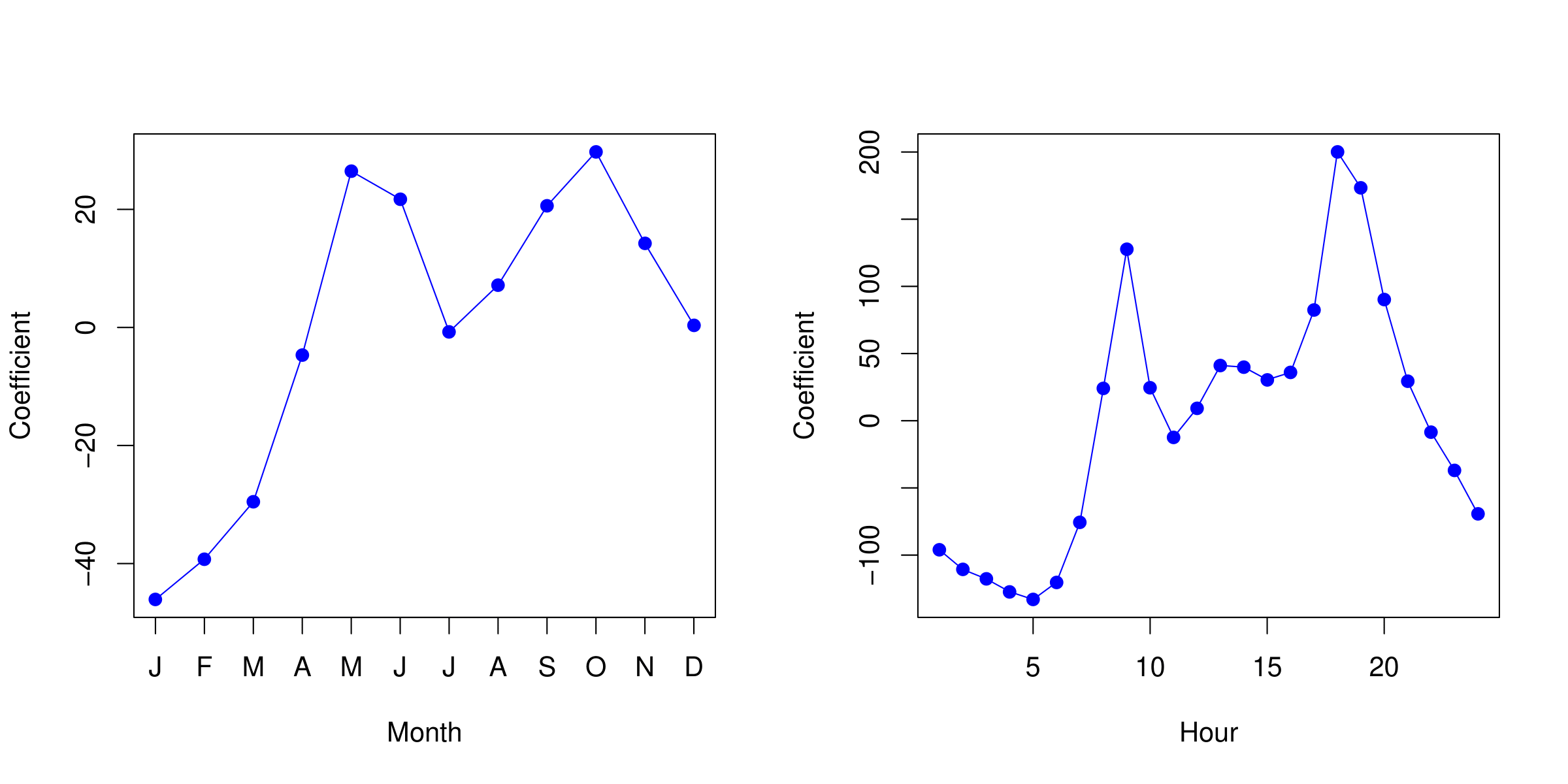 Linear regression with response bikers: number of hourly users in the bikeshare program in Washington, DC.